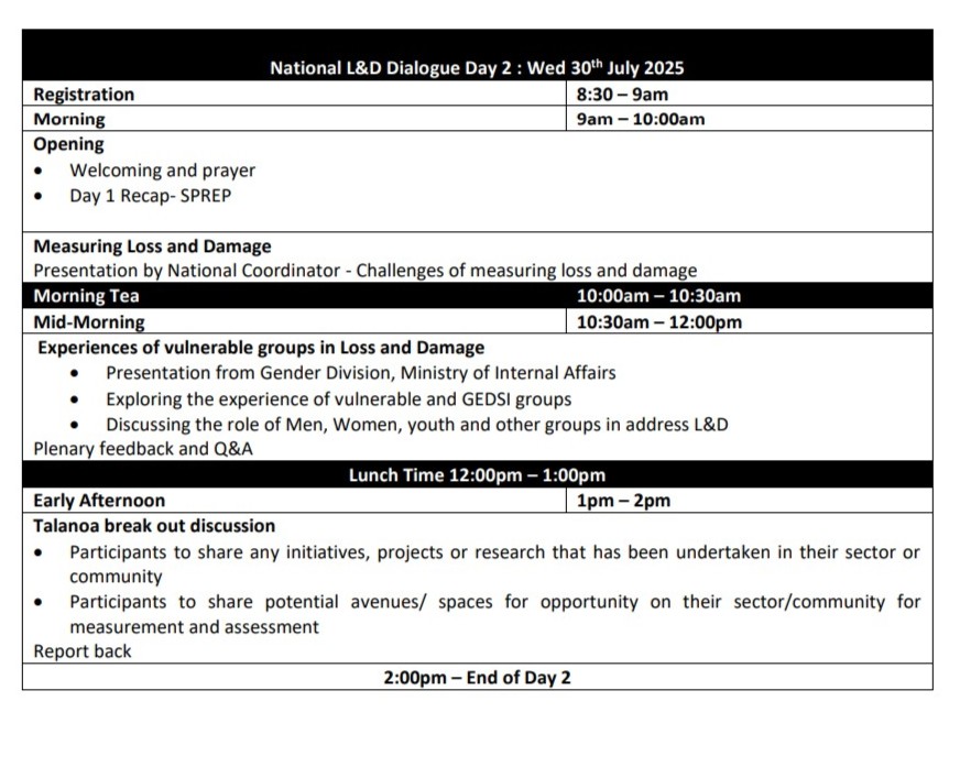 TONGA NATIONAL LOSS AND DAMAGE DIALOGUE – Day 2 of 3