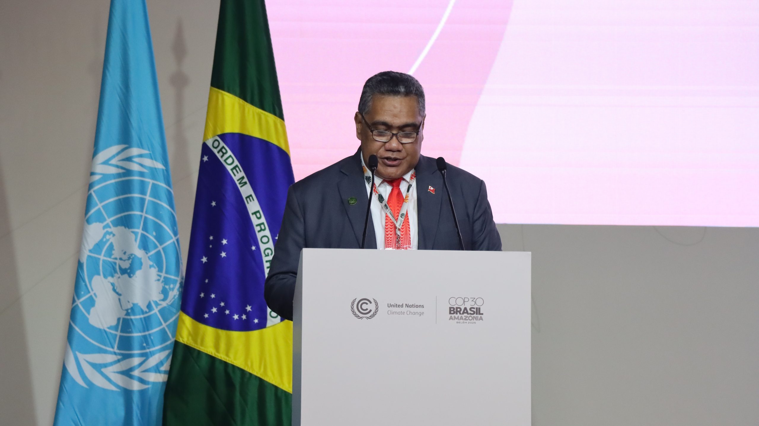 18 November 2025 Bélem, Federative Republic of Brazil, The Government of the Kingdom of Tonga today delivered its national statement at the Thirtieth Session of the Conference of the Parties to the United Nations Framework Convention on Climate Change (COP30), taking place in Bélem, Federative Republic of Brazil. The statement was delivered by the Head of Delegation and Chief Secretary and Secretary to Cabinet, Mr. Paula Pouvalu Maʻu, on behalf of the Kingdom of Tonga.